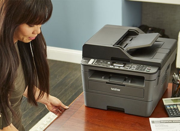 - Máy in Brother thiết kế tối giản dễ dàng đặt trên bàn làm việc, kệ tủ